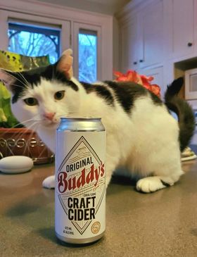 We asked our customers to send in photos of our products. Here is one of Buddy the Cat with our Buddy's Original Cider!